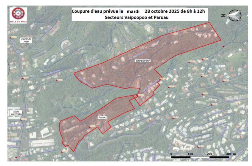 • Mardi 28/10/2025 – 08h à 12h : Vaipoopoo Haut/Vaipoopoo Bas/Paruau haut/Paruau bas