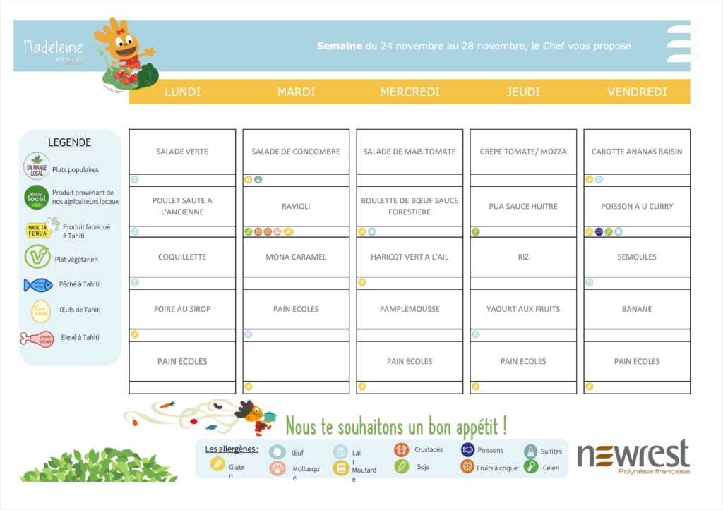 Nous publions ici les menus qui seront servis dans la semaine du 24 au 28 novembre 2025 dans nos écoles communales.