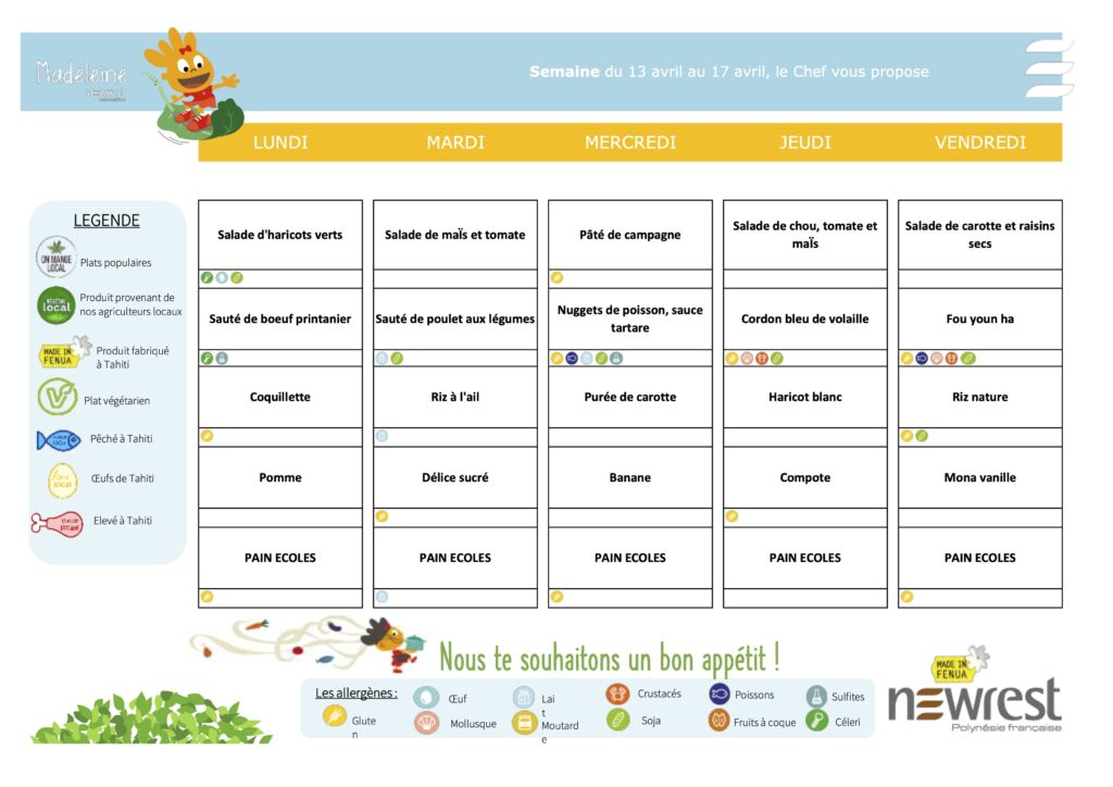 Découvrez les repas préparés pour nos élèves des écoles de Tamahana, Erima et du CJA de Arue pour cette semaine de rentrée scolaire.