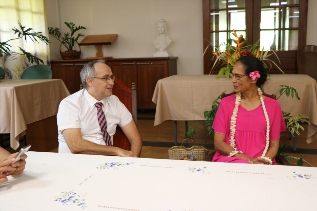 Une rencontre protocolaire a eu lieu entre notre Tāvana Teura Iriti et les responsables de l’Église de Jésus Christ des Saints des derniers jours de Arue, notamment son Président de pieu, Teinaotea MONG YEN.